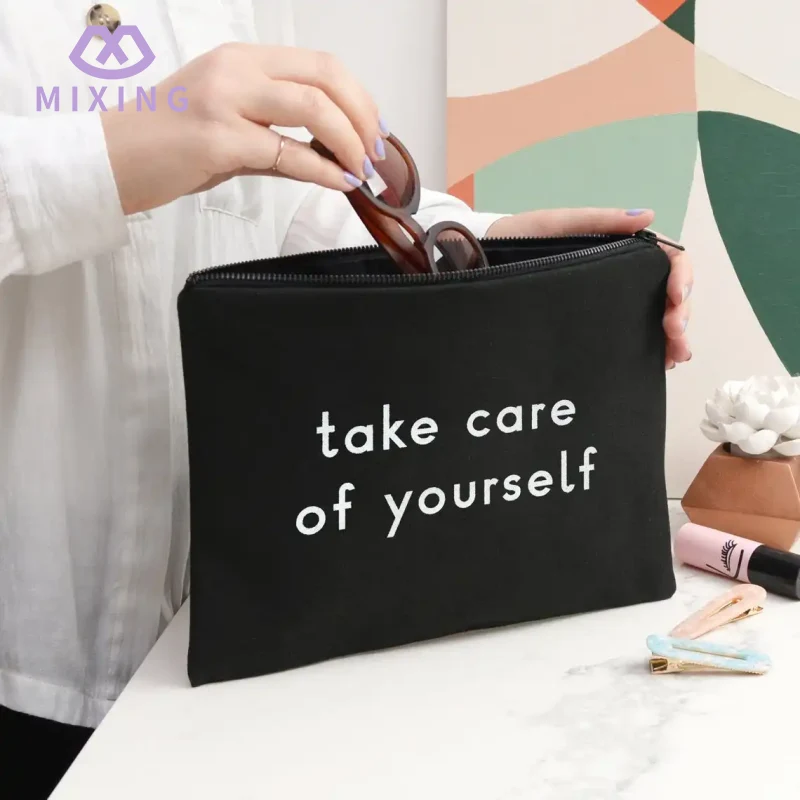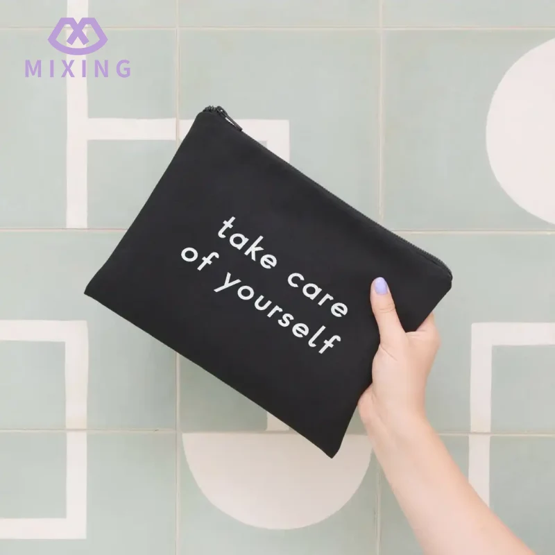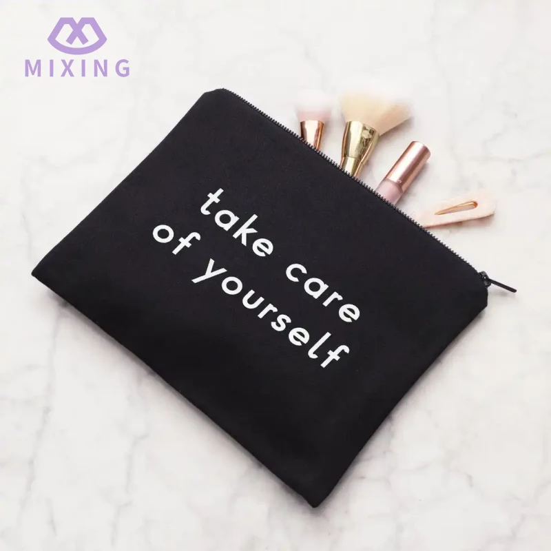 Der schwarze Baumwoll-Kosmetikbeutel des Mischherstellers hat eine leichte Fixierungsbehandlung. Es ist nicht leicht, im täglichen Gebrauch Flecken oder Verschmutzungen zu bekommen, auch wenn gelegentlich etwas Grundierung oder Lippenstift darauf aufgetragen wird, kann es mit einem feuchten Tuch abgewischt werden. Es ist kein häufiges Waschen erforderlich und Sie müssen sich keine Sorgen über ein Ausbleichen oder Aufhellen nach dem Waschen machen. Auch nach längerem Gebrauch bleibt ein sauberes und gepflegtes schwarzes Aussehen erhalten.