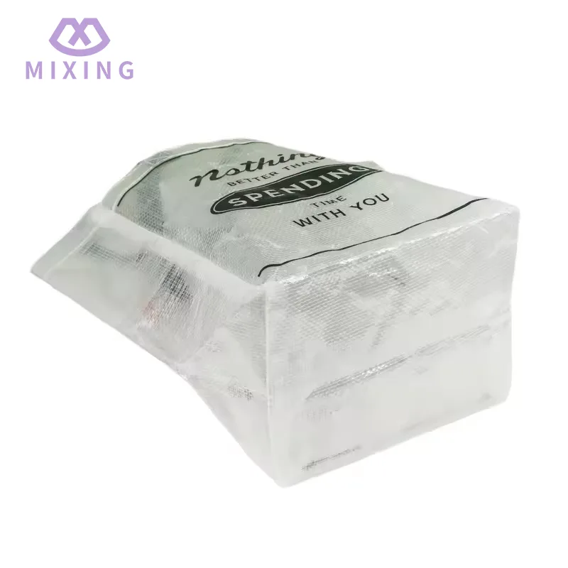 Das transparente Design der durchsichtigen, gewebten PP-Tragetasche sorgt für Komfort im täglichen Gebrauch. Wenn Sie auf die Gegenstände in der Tasche zugreifen müssen, müssen Sie nicht ständig darin stöbern. Durch das transparente Material ist der Standort der Gegenstände direkt erkennbar, was Zeit sparen und die Effizienz verbessern kann.