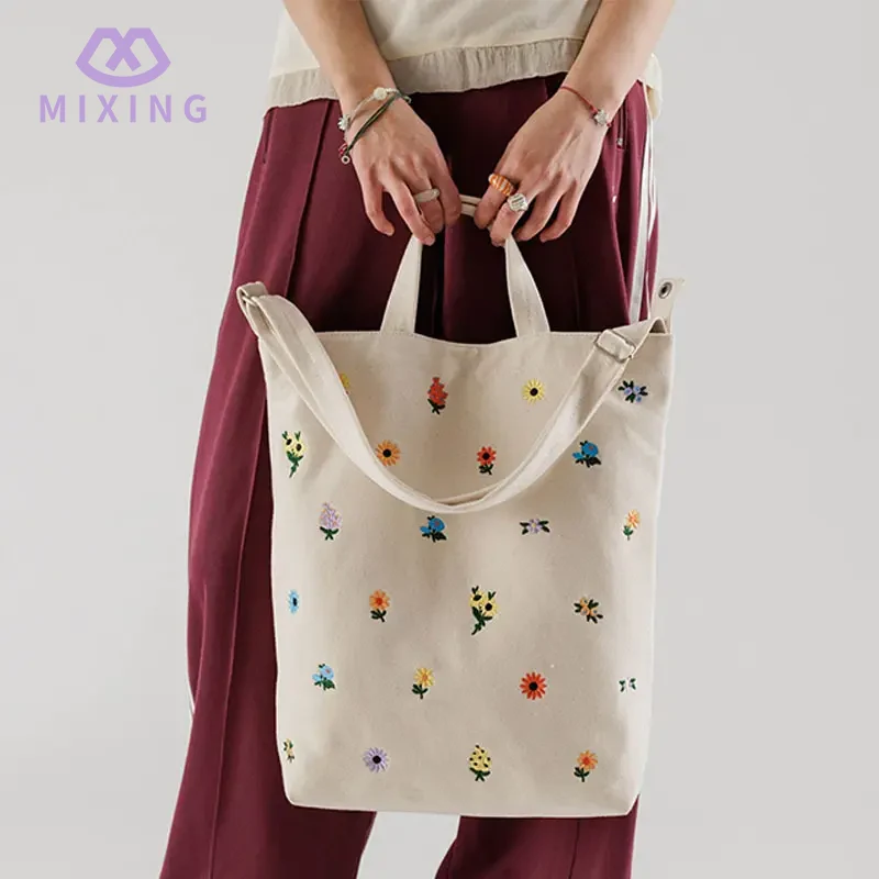 Der Stoff der von Mixing hergestellten bestickten China-Tragetasche für Damen fühlt sich weich an, hat aber eine Textur, er ist nicht leicht und formlos. Es bleibt beim Befüllen mit Dingen knackig und wackelt und klebt nicht am Körper, selbst wenn es mit mehreren Büchern oder einer Thermoskanne gefüllt ist, lässt es sich fest halten und sieht ordentlich aus.