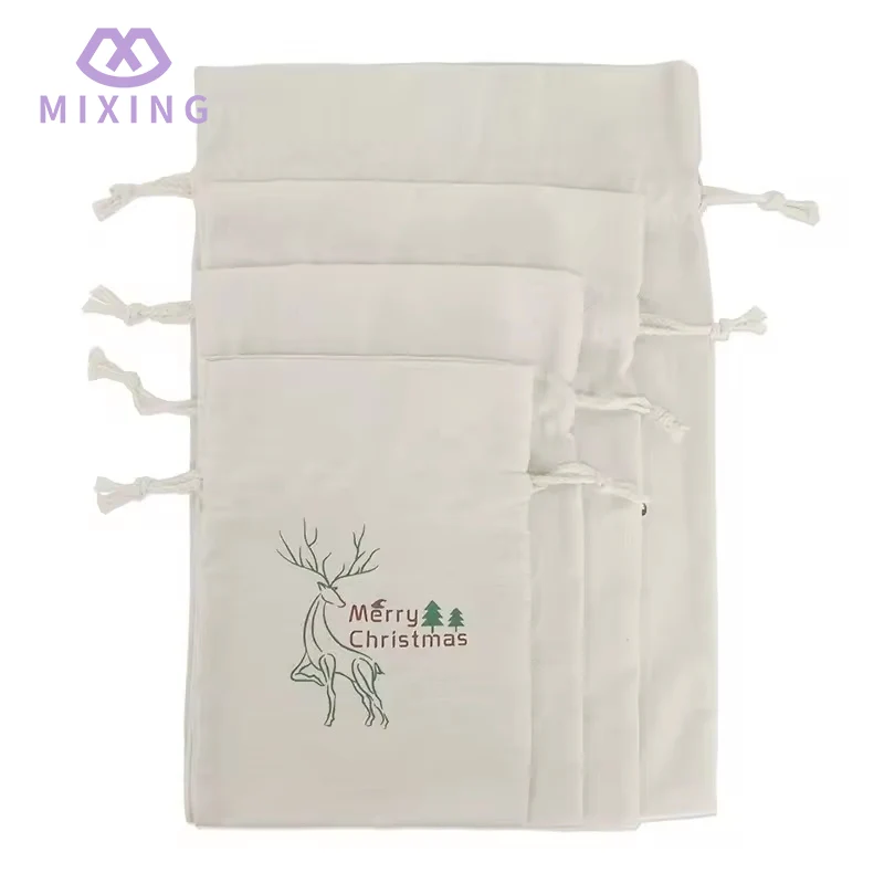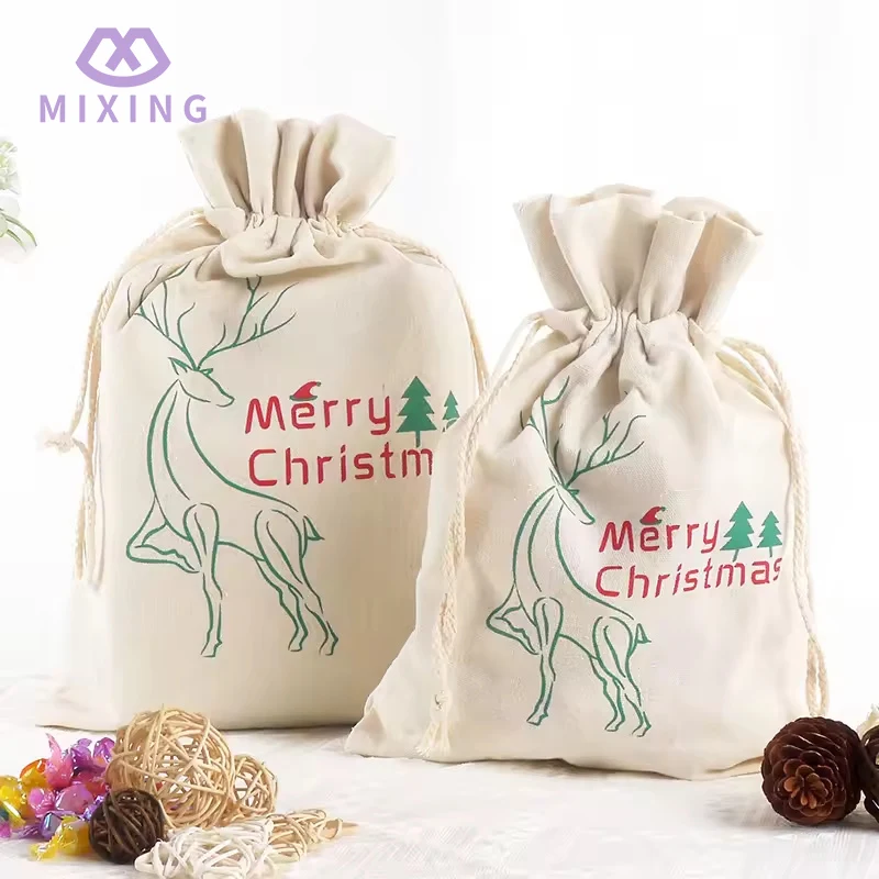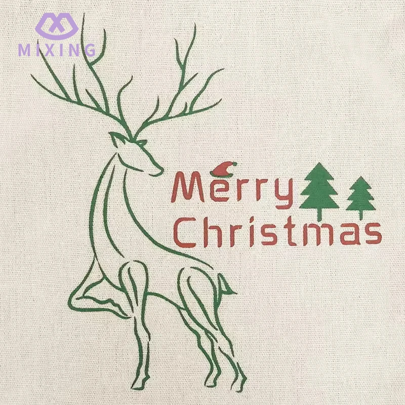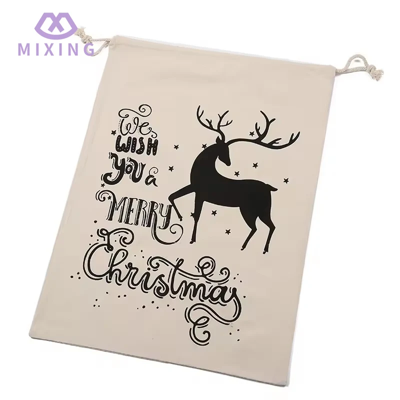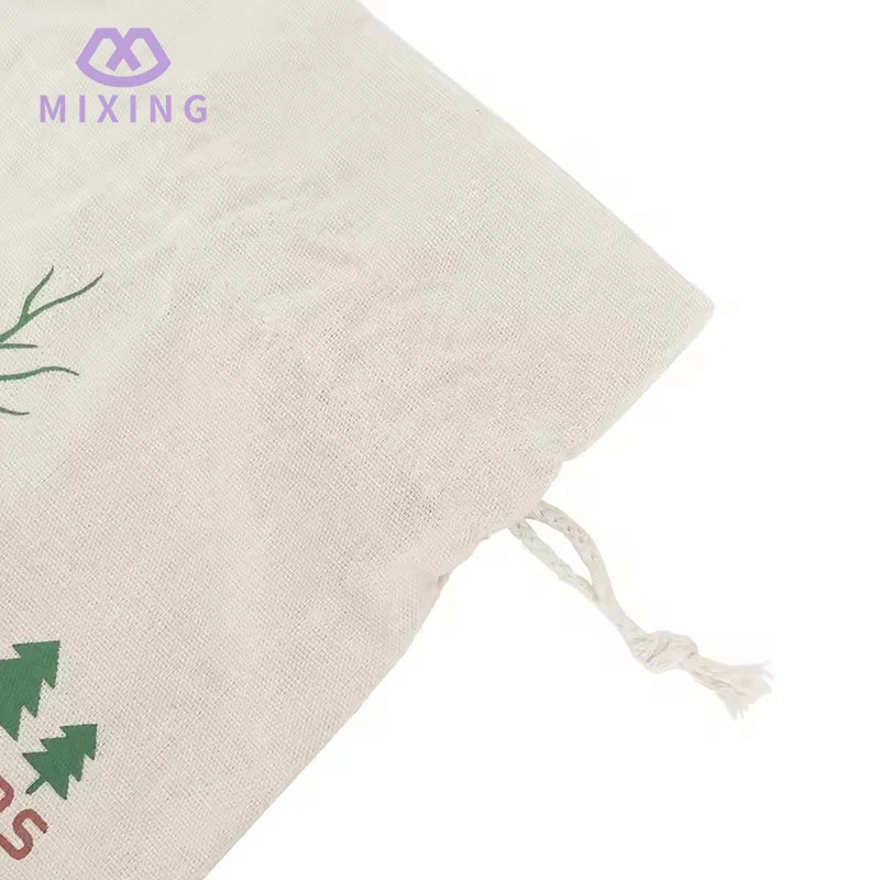 Der Stoff des hochwertigen großen Baumwoll-Weihnachtsbeutels mit Kordelzug von Mixing wurde einer Vorschrumpfbehandlung unterzogen. Bei Berührung können Sie die dicke Textur und die feine Textur spüren, die für Baumwollstoffe charakteristisch sind. Es ist nicht anfällig für Verformungen wie dünnes Baumwollgewebe und aufgrund der Härte des Materials auch nicht steif. Es kann nach dem Laden von Gegenständen auf natürliche Weise eine regelmäßige Form beibehalten. Der Taschenkörper ist mit satten weihnachtlichen Mustern bedruckt, die leuchtende Farben haben und gut mit dem Stoff harmonieren, wodurch das billige Gefühl vermieden wird, dass die Muster auf der Oberfläche schweben