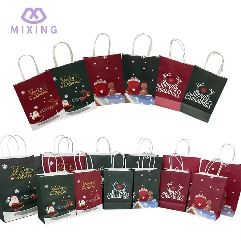 Großhandelsmischungspapier Weihnachts-Goodie-Taschen sind eine festliche und umweltfreundliche neue Alternative zum Kauf von Plastiktüten. Sie eignen sich perfekt für Verpackung von Weihnachtssnacks, kleinen Geschenken oder Partybevorzugungen und verleihen Weihnachtsfeierlichkeiten eine besondere Note, die die Praktikabilität mit festlicher Charme verbinden.