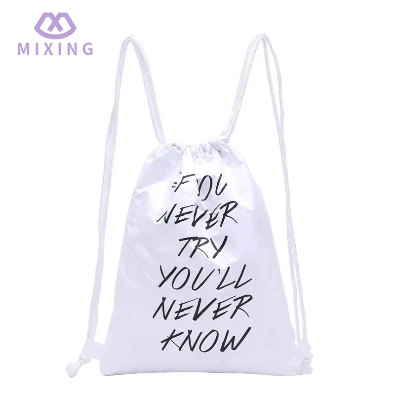 Der waschbare Tyvek-Rucksack mit Kordelzug hat den doppelten Vorteil, dass er leicht und langlebig ist. Das Dupont-Papier selbst ist leicht, sodass Sie sich nicht belastet fühlen, egal wie viele Dinge Sie tragen. Gleichzeitig ist es haltbarer als Leinwand und normales Papier. Es geht nicht so leicht kaputt, selbst wenn es an einem rauen Schreibtisch reibt oder von kleinen Ästen zerkratzt wird. Sie müssen sich beim Pendeln oder auf Kurztrips keine Sorgen über leichte Schäden machen.