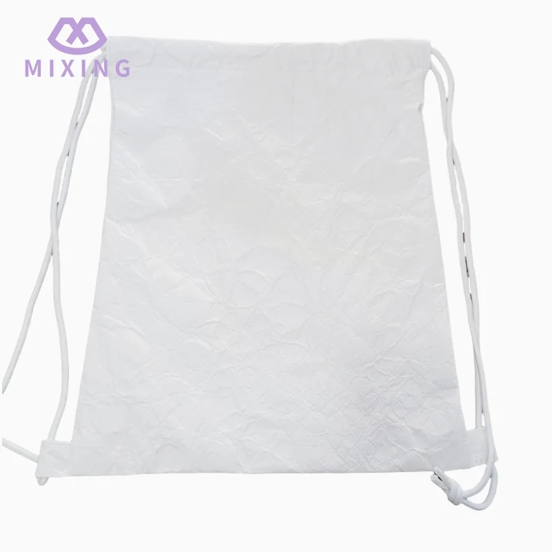 Der Kordelzugteil des waschbaren Tyvek-Rucksacks mit Kordelzug, der vom Hersteller Mixing hergestellt wird, ist ein verbreitertes Nylonband, keine dünne Schnur, er spannt nicht, wenn er über der Schulter getragen wird, und lässt sich leicht ziehen. Die Beutelöffnung ist im festgezogenen Zustand gut verschlossen, so dass an windigen Tagen kein Grund zur Sorge besteht, dass der Inhalt herausfliegt.