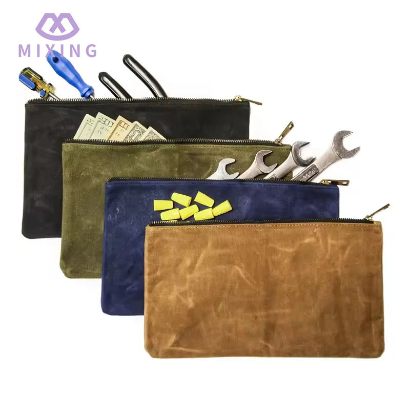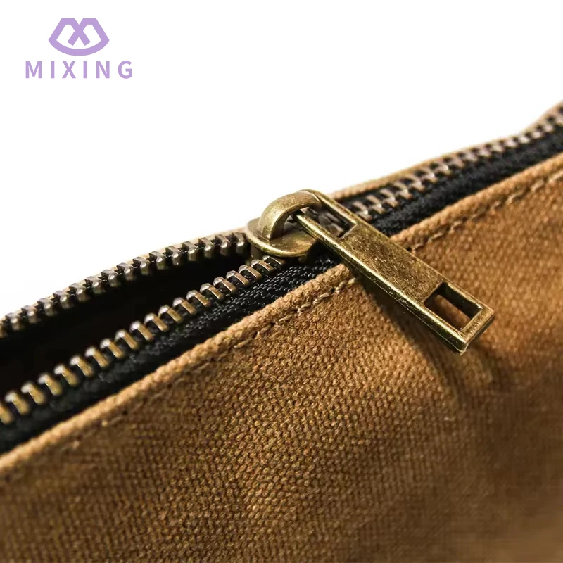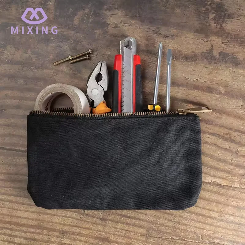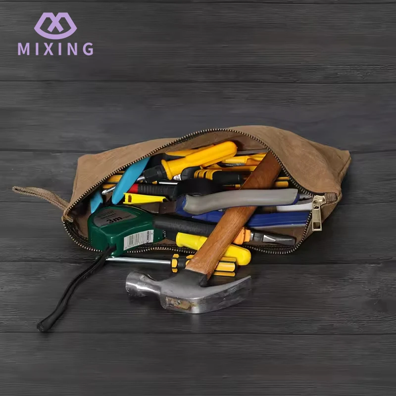 Die China-Werkzeugtasche aus gewachstem Canvas von Mixing wird hauptsächlich zur Aufbewahrung kleiner Werkzeuge verwendet, die häufig im täglichen Leben verwendet werden. Der Taschenkörper verfügt über ein Reißverschluss-Öffnungs- und Schließdesign. Der Reißverschluss ist aus langlebigem Metall, beim Ziehen und Schließen ist er sehr leichtgängig und bleibt nicht durch eine leichte Kollision des Werkzeugs hängen. Wenn der Reißverschluss geschlossen ist, kann die Beutelöffnung relativ dicht verschlossen werden. Machen Sie sich keine Sorgen, dass die Werkzeuge wackeln und hineinfallen.